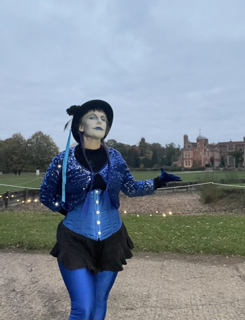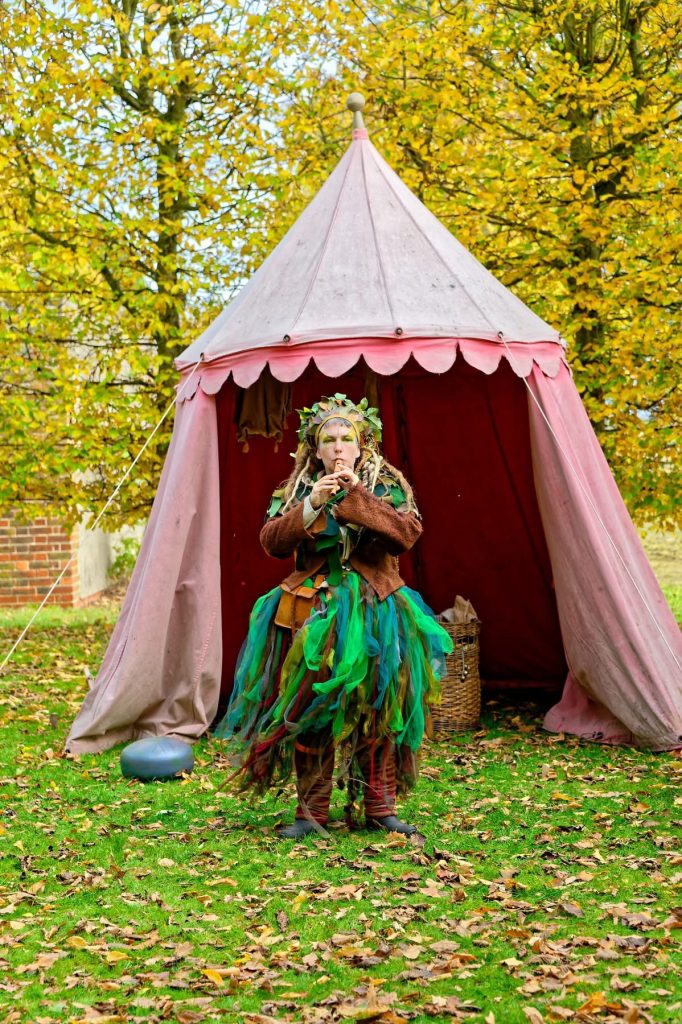 October 2025 – Halloweenies half term event. Providing a mythical character to play music amongst the beautiful backdrop of the Hornbeam Circle at Kentwell Hall. Follow the music of Ostrua the dryad from all over the estate, to find your way to the magical hornbeam circle. First person character, fully immersive visitor engagement, using a wide variety of instruments.