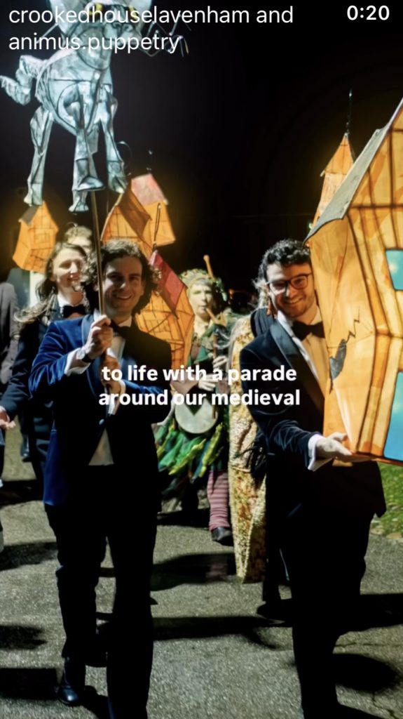 March 2026 – Three supper clubs including music for a lantern parade, and then playing for the rest of the evening at The Crooked House, Lavenham.