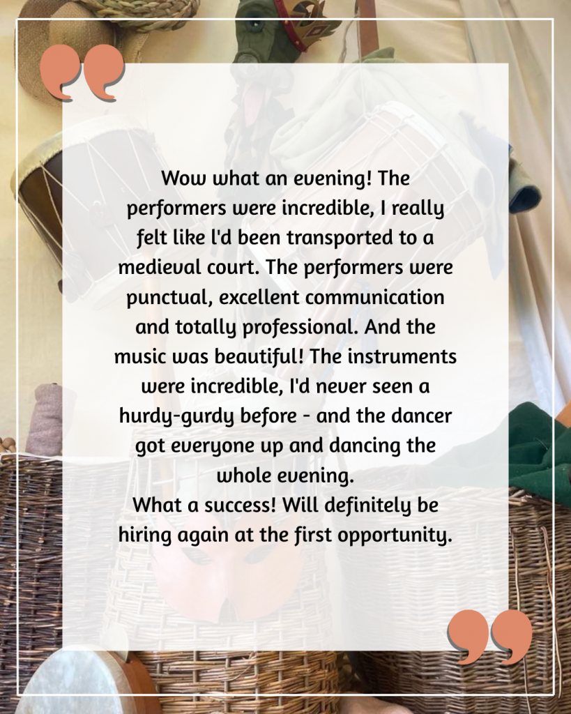 Provide tudor period music and dancing for a hen party, with Steve Taylor and Katy Marchant.