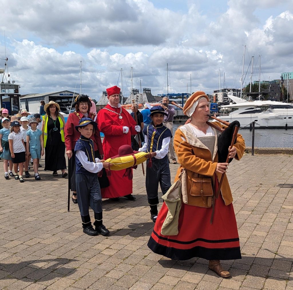 July 2023 – Playing for a parade of a replica of Thomas Wolsey’s hat as promotion for the Wolsey 550 project and the soon to open exhibition at Suffolk Archives