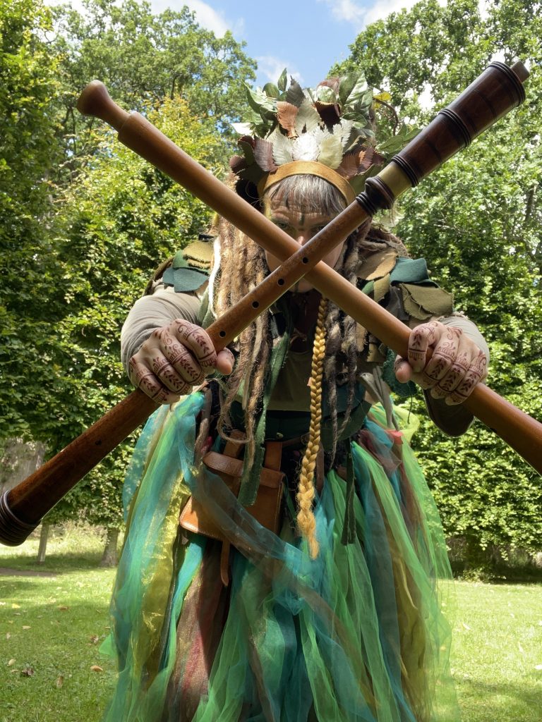 July 2023 – Magic Weekend at Kentwell Hall. Providing a mythical character to play music amongst the beautiful backdrop of the Hornbeam Circle at Kentwell Hall. Follow the music of Ostrua the dryad from all over the estate, to find your way to the magical hornbeam circle. First person character, fully immersive visitor engagement, using a wide variety of instruments.