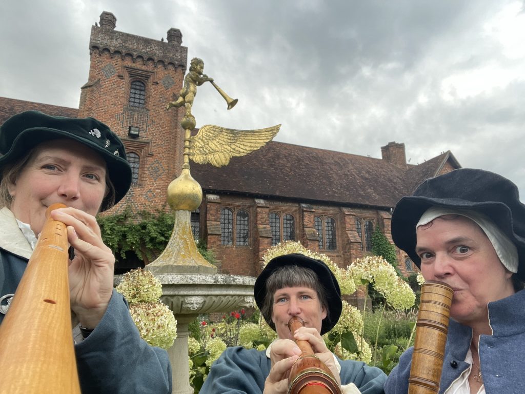 August 2023 -Tudor re-creation at Kentwell Hall, 9 days of public event. Provide first person interaction with music and dance for all that come, alongside a great bunch of other tudor players.