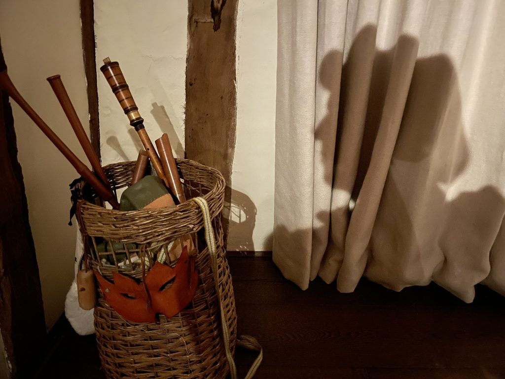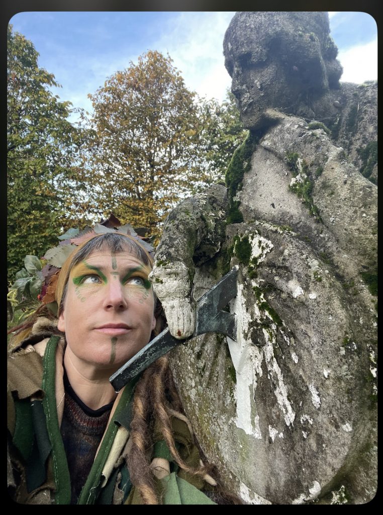 October 2023 – Halloweenies half term event. Providing a mythical character to play music amongst the beautiful backdrop of the Hornbeam Circle at Kentwell Hall. Follow the music of Ostrua the dryad from all over the estate, to find your way to the magical hornbeam circle. First person character, fully immersive visitor engagement, using a wide variety of instruments.